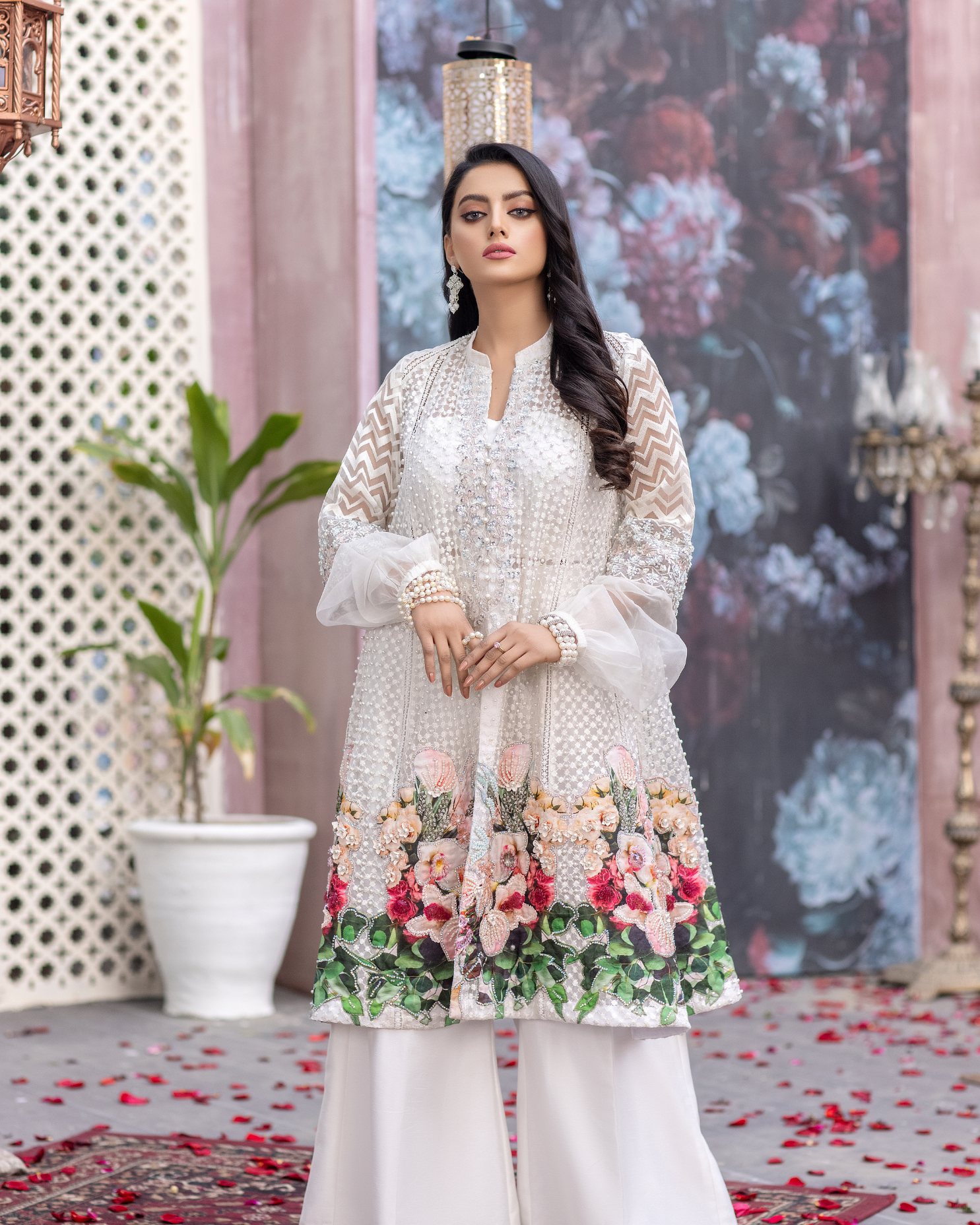 Crafted in the finest georgette, adorned with delicate hand embroidery, and elevated through contemporary stitching; each piece is designed to be as unique as you.
