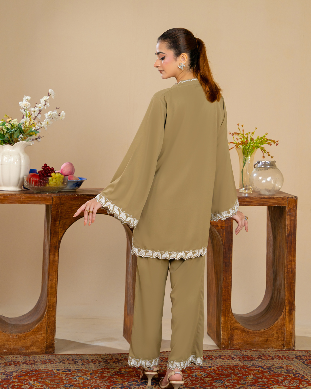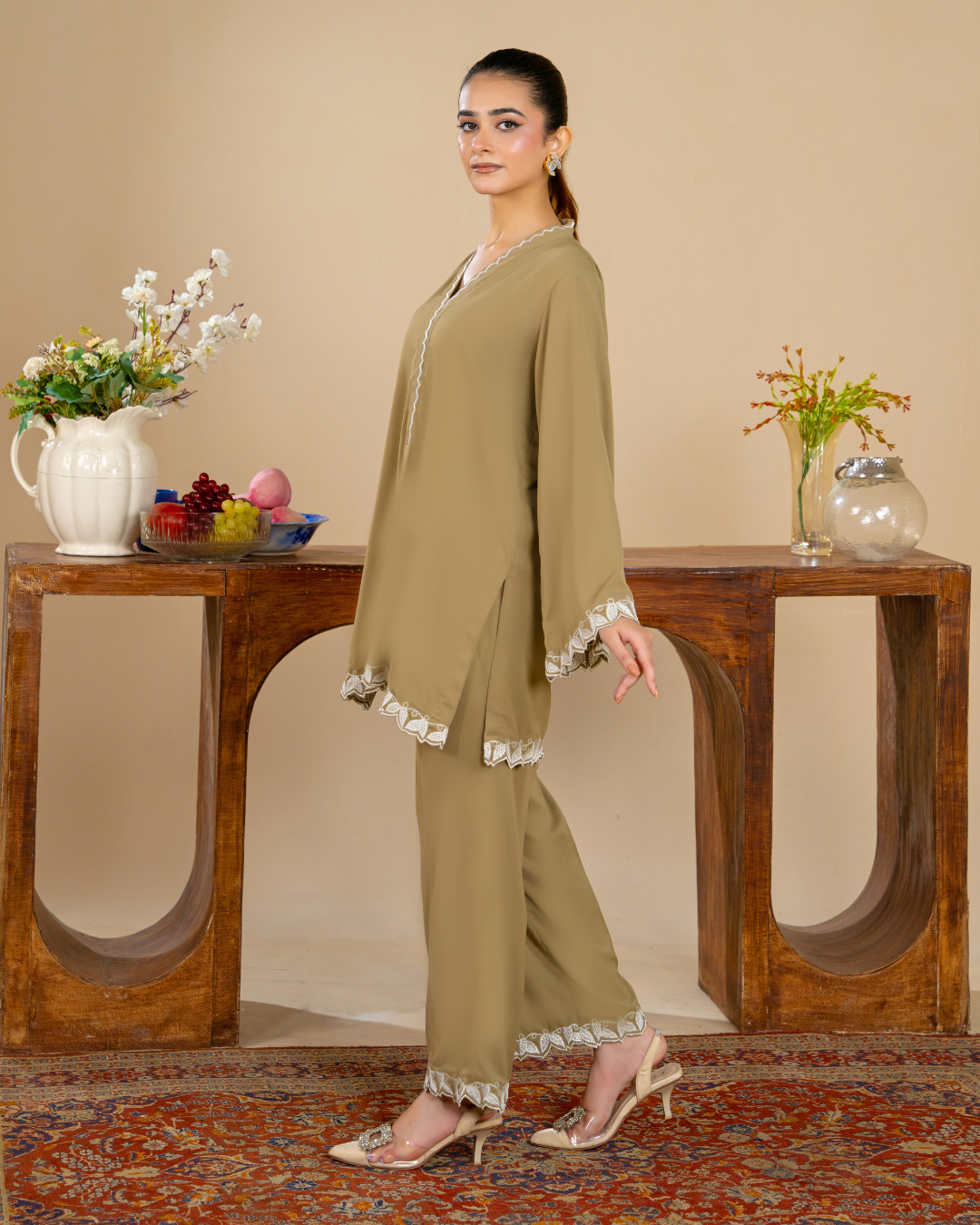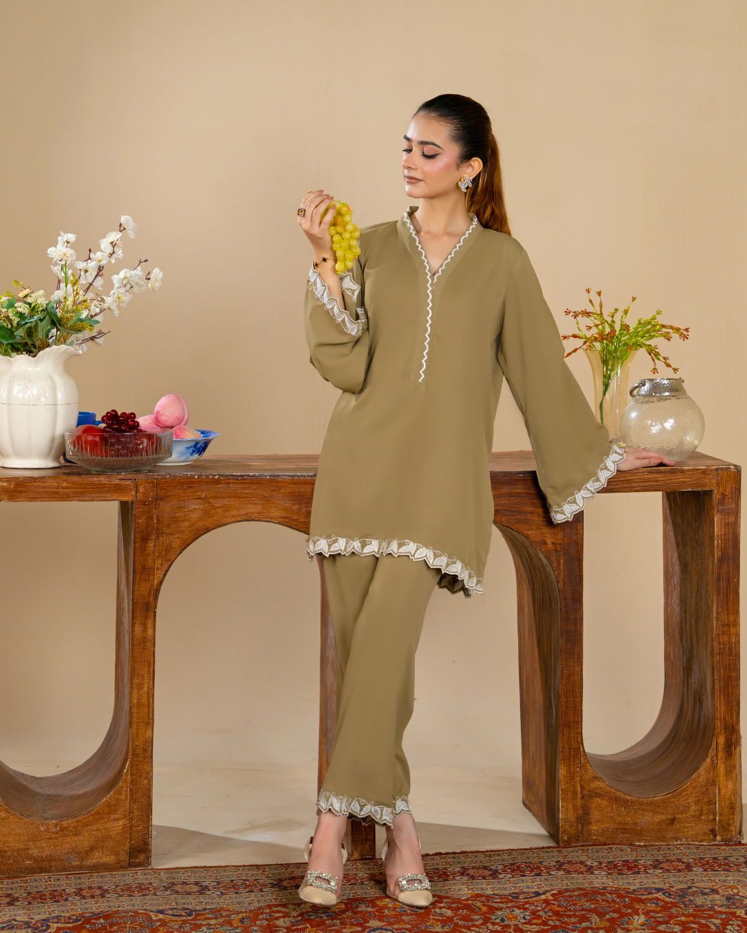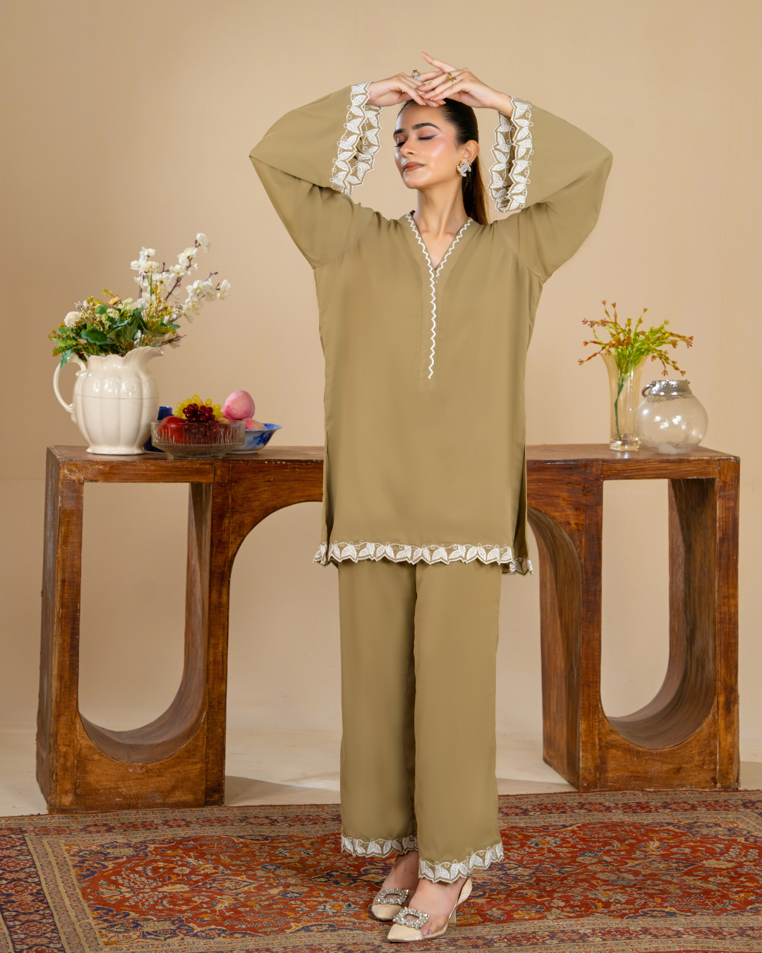 Whether you prefer soft pastels, bold tones, or a fabric of your choice, this outfit can be fully customized in any color and fabric to reflect your unique style.